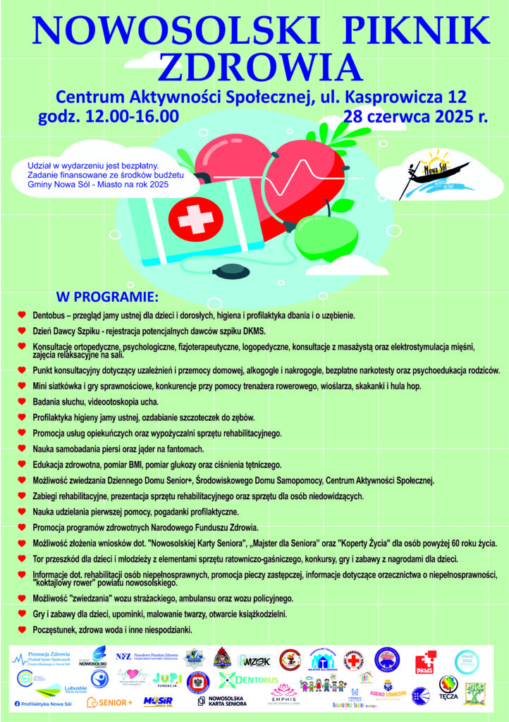 Jednym z punktów programu będzie również rejestracja potencjalnych dawców szpiku w bazie DKMS – gest, który może uratować komuś życie. Dodatkowo, uczestnicy wydarzenia będą mogli zasięgnąć informacji na temat uzależnień i przemocy w dedykowanym punkcie konsultacyjnym. Osoby starsze będą mogły złożyć wnioski o „Nowosolską Kartę Seniora”, „Kopertę Życia” czy udział w inicjatywie „Majster dla Seniora”.