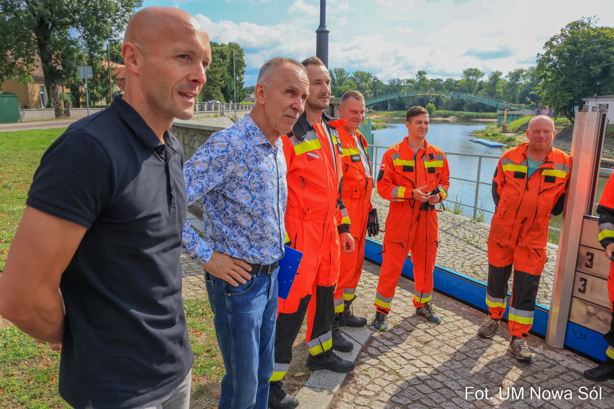 Trzecim przystankiem był odcinek wału przeciwpowodziowego, gdzie na wojewodę czekali członkowie nowosolskiej jednostki OSP Ratownictwa Wodnego. Strażacy, odpowiedzialni za obsługę ściany przeciwpowodziowej i inne działania ratunkowe, potrzebują wsparcia – zarówno w zakresie nowego sprzętu, jak i podstawowego wyposażenia.